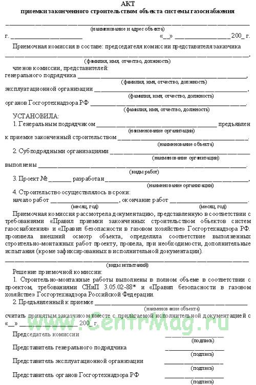 Акт приемки сетей газораспределения