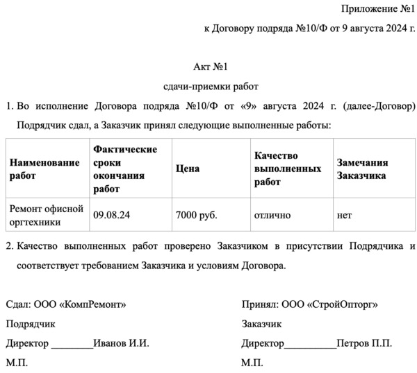 Акт приемки выполненных обязательств 141 фото