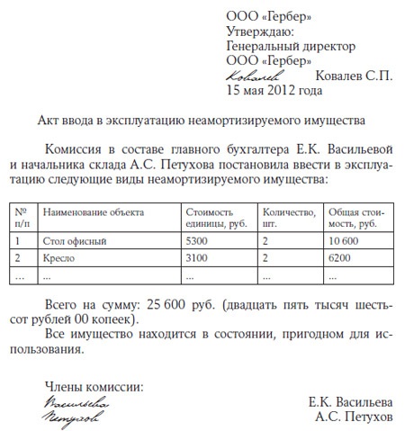 Акт списания мебель образец