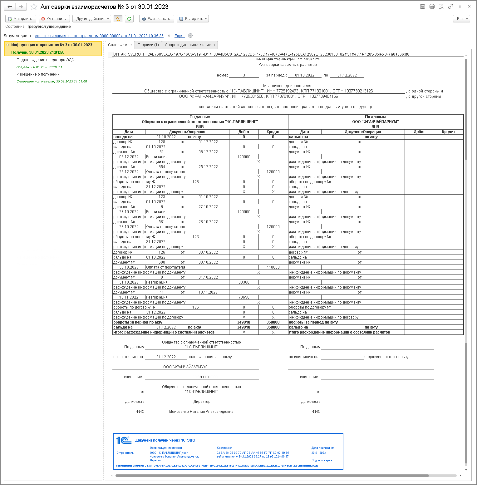 Акт сверки утверждены