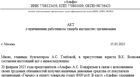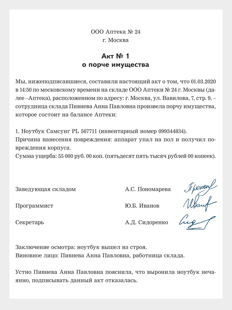 Акт ущерба форма