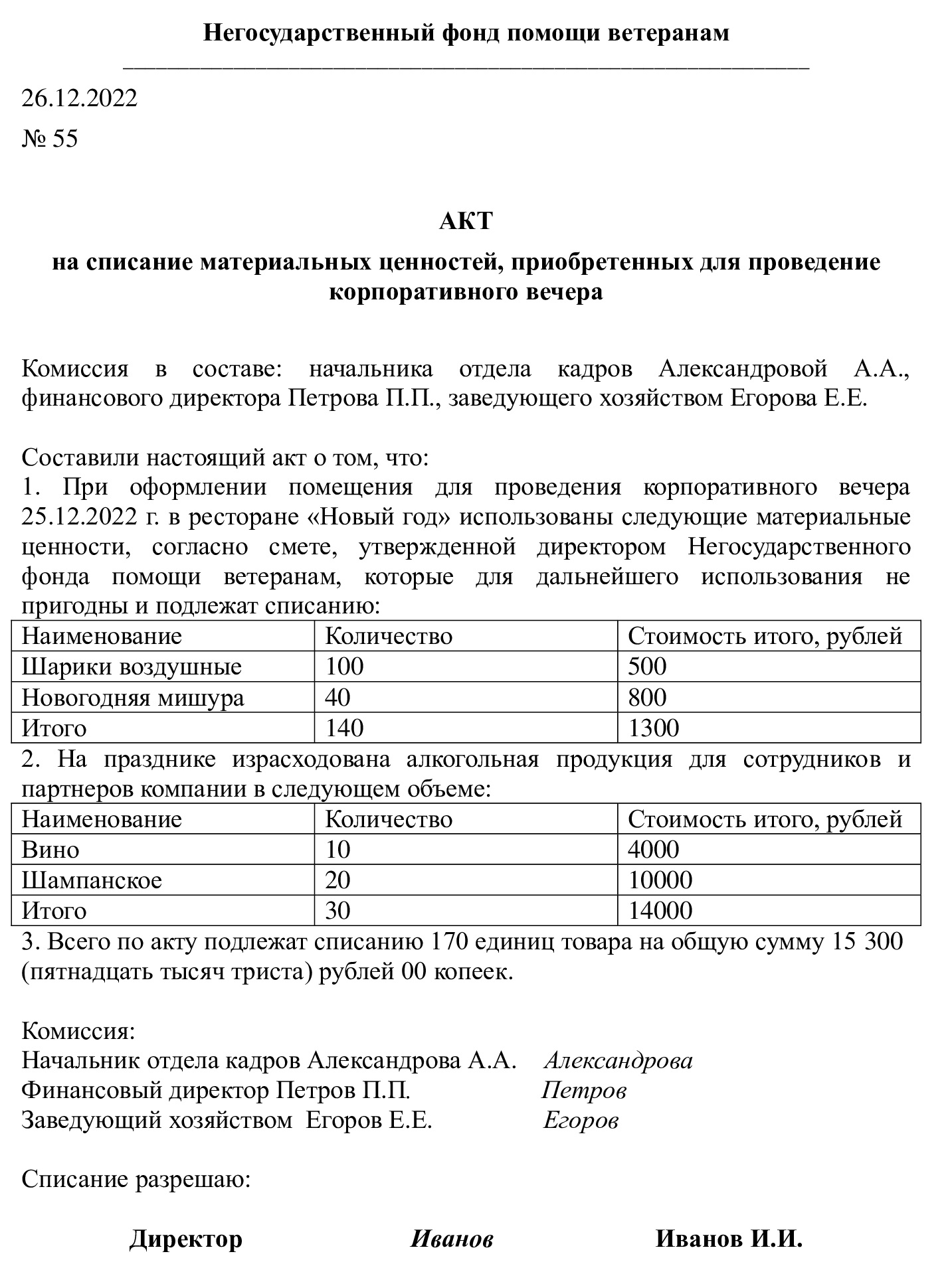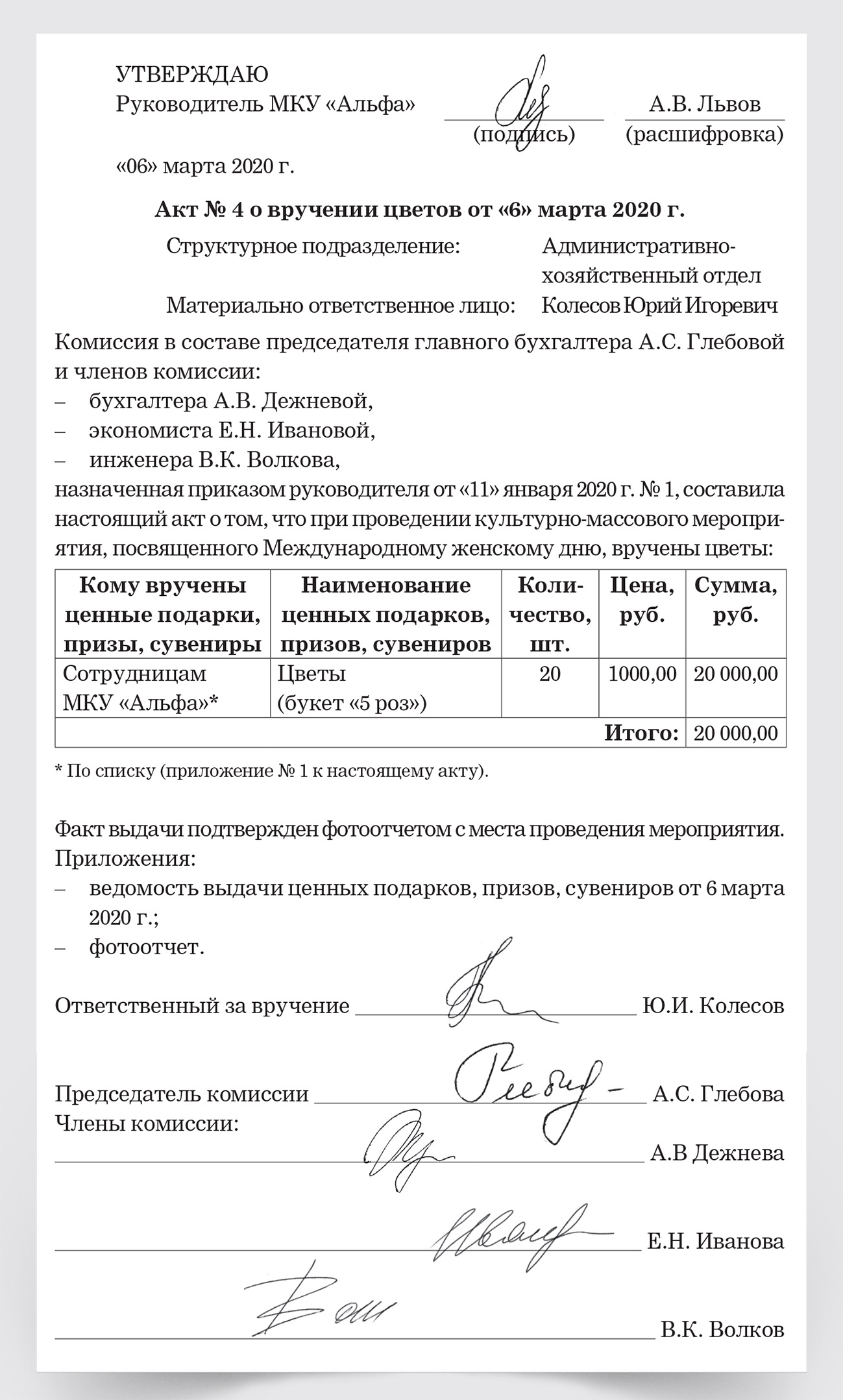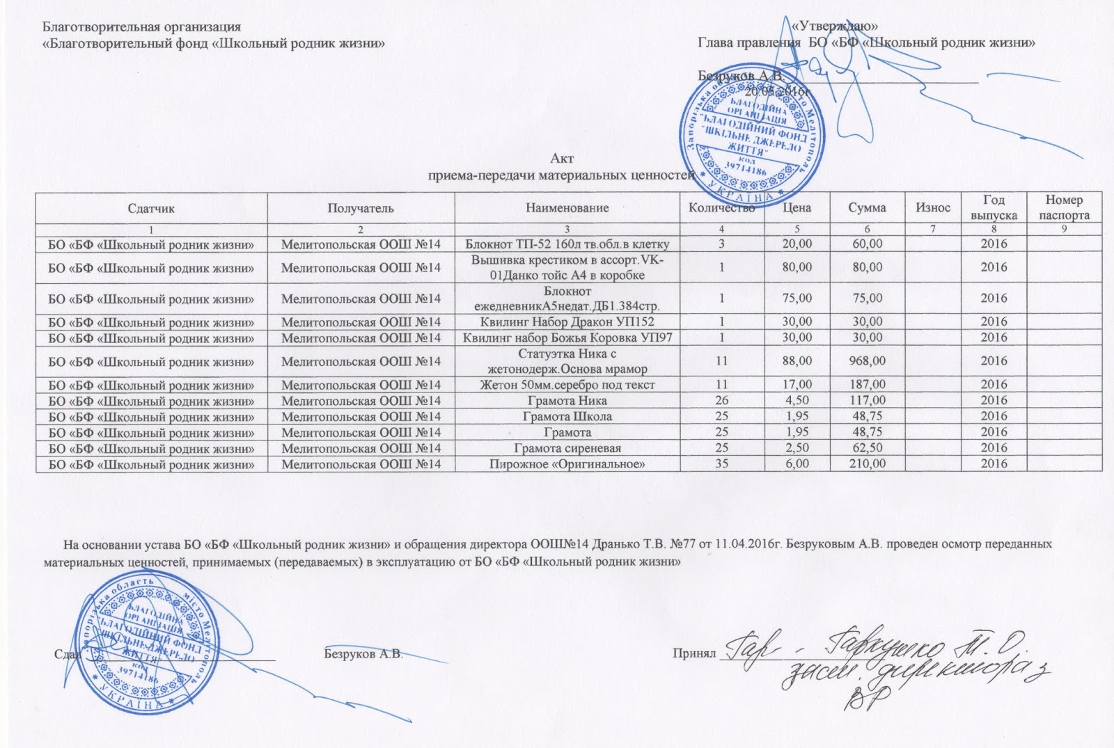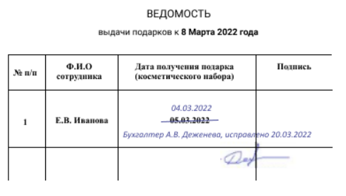 Акт вручения подарков