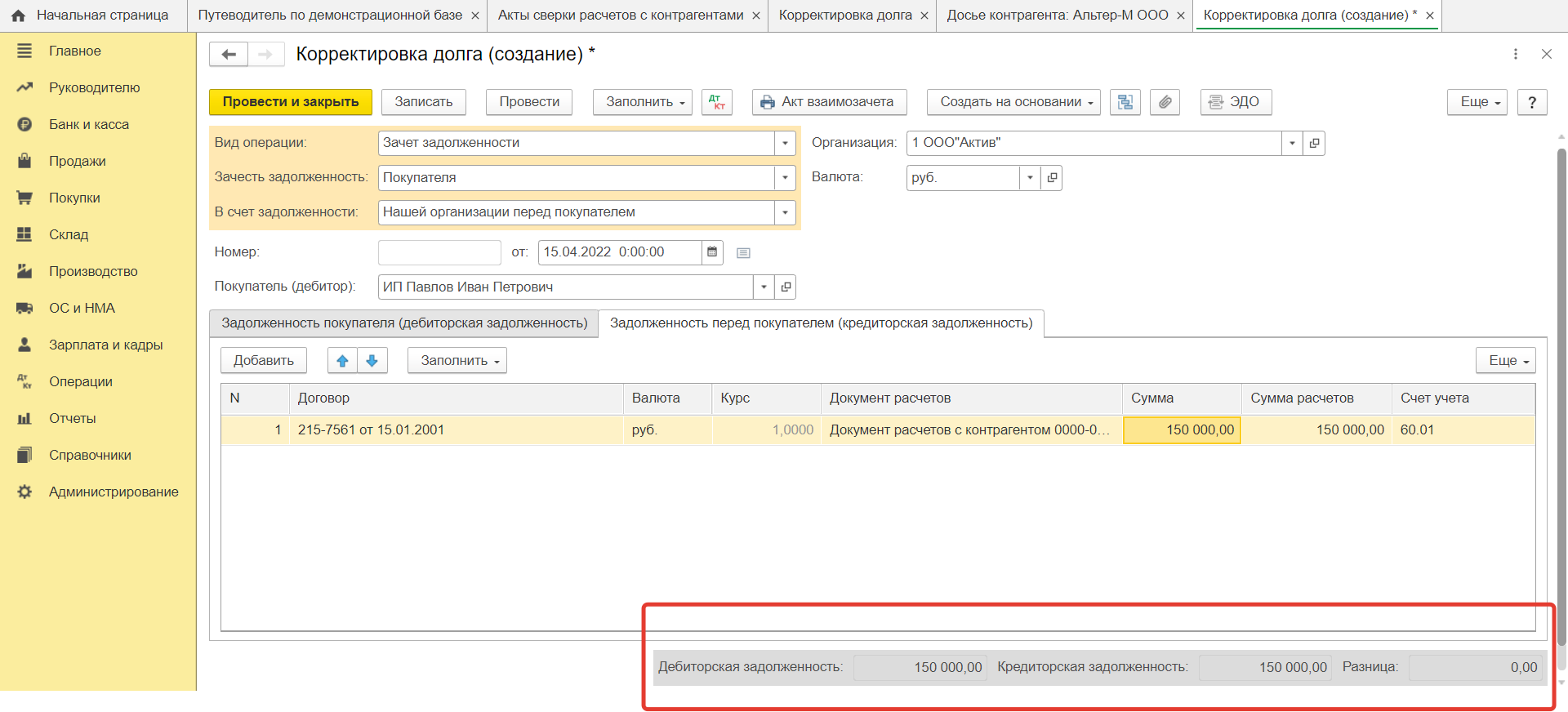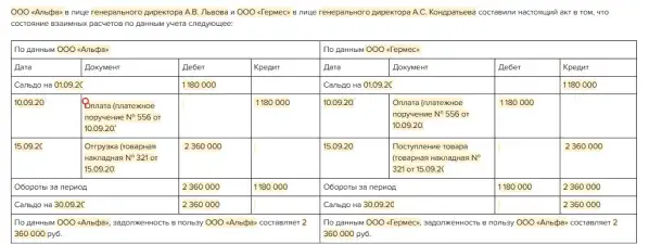 Акт взаимозачета 1 с