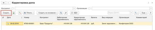 Акт зачета в 1с 8.3
