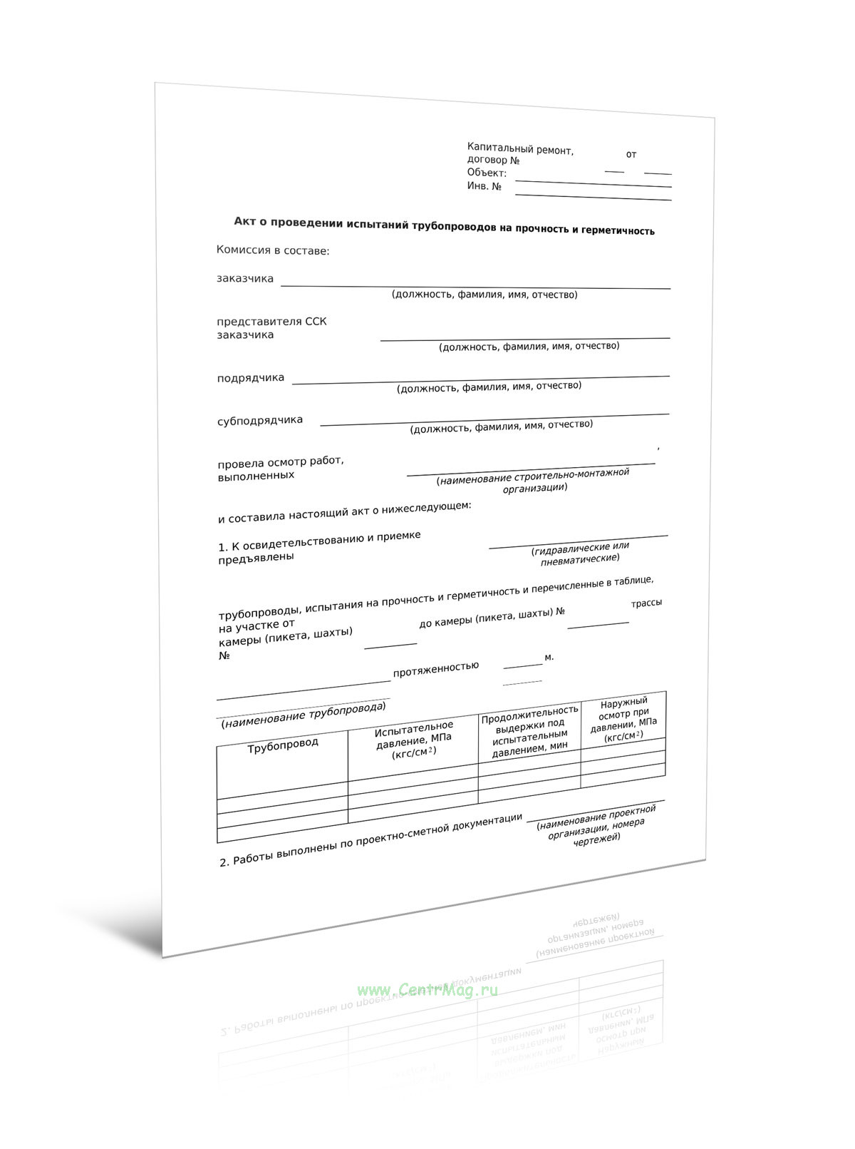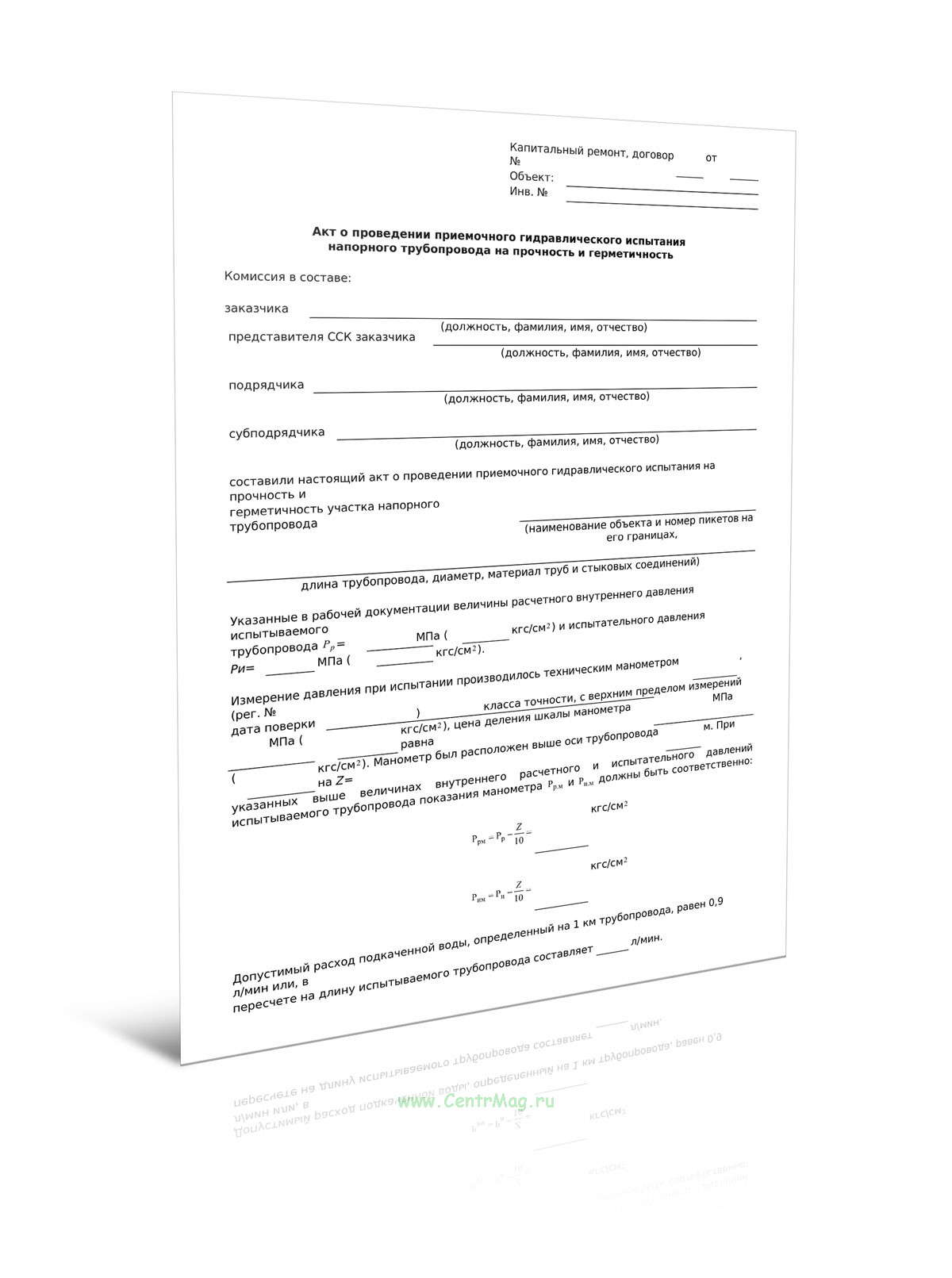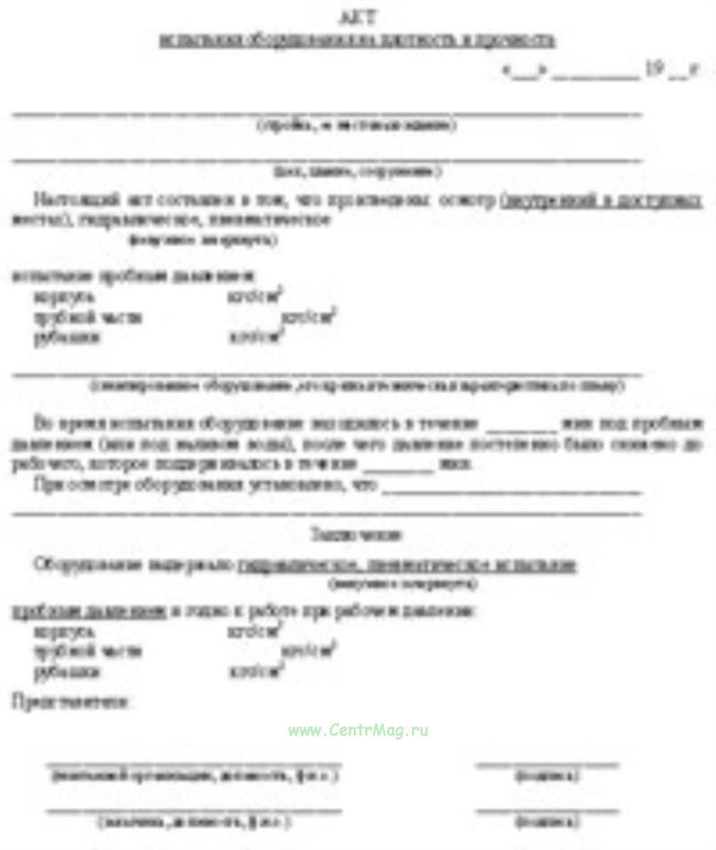 Акты испытаний на прочность и плотность