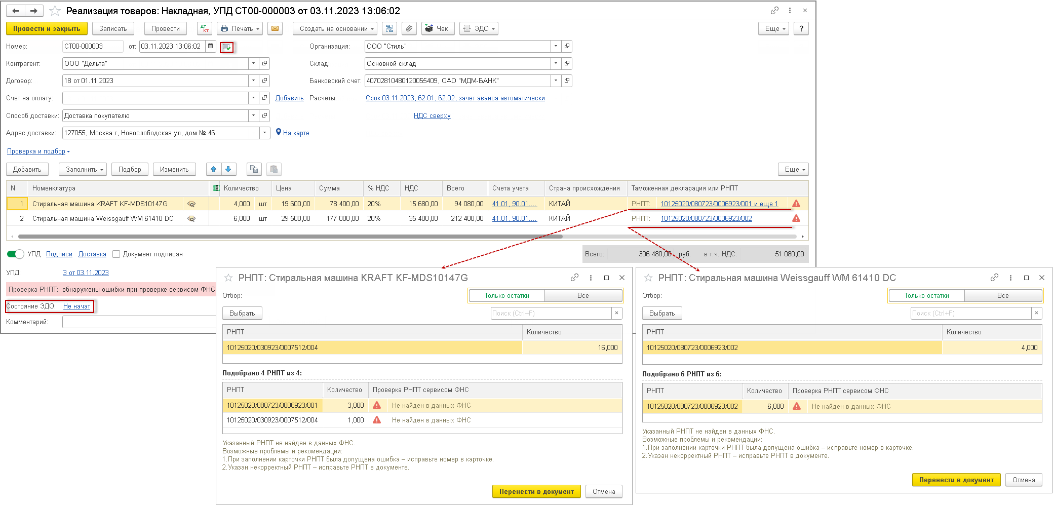 Акты реализации товаров