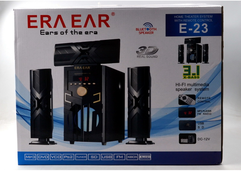 Акустическая система 3 .1 ERA E-23 совместима с DVD/Media-проигрывателями, PC,TV и другими источниками звука, способна проигрывать музыкальные файлы с SD-карт и USB flash .