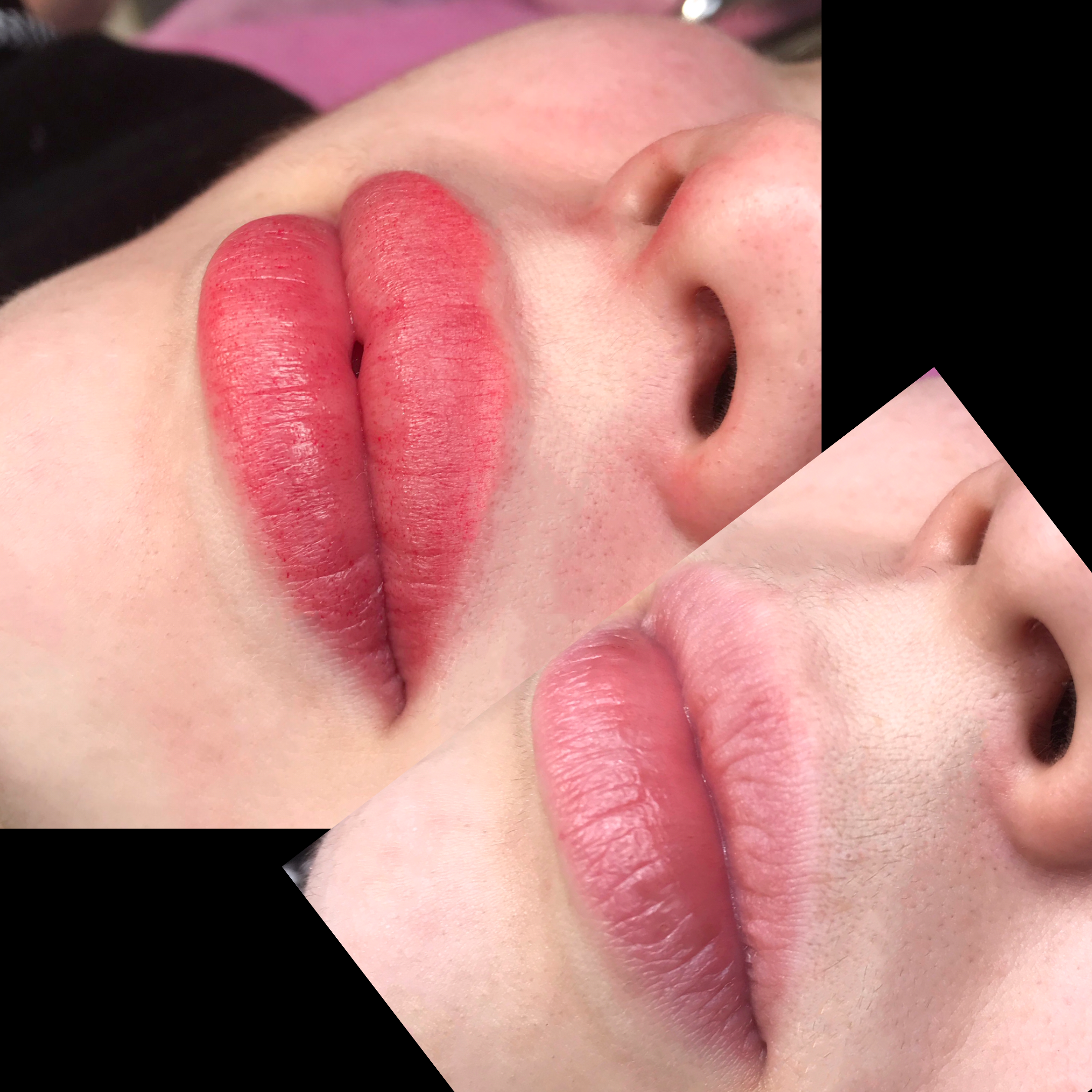 Перманентный макияж губ до и после процедуры . Губы после татуажа: фото заживления по дням . . .