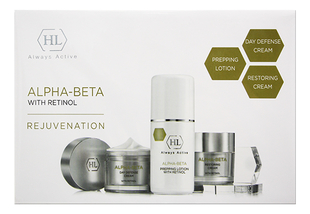 ALPHA-BETA WITH RETINOL Альфа бета ретинол линия Уникальная линия израильского бренда Холи Ленд предназначена для ухода за кожей лица любого типа . Средства по уходу за кожей лица Альфа Бета Ретинол предназначены для атравматического обновления кожи . В составе средств по уходу за кожей лица натуральные компоненты, имеющие широкий спектр действия .