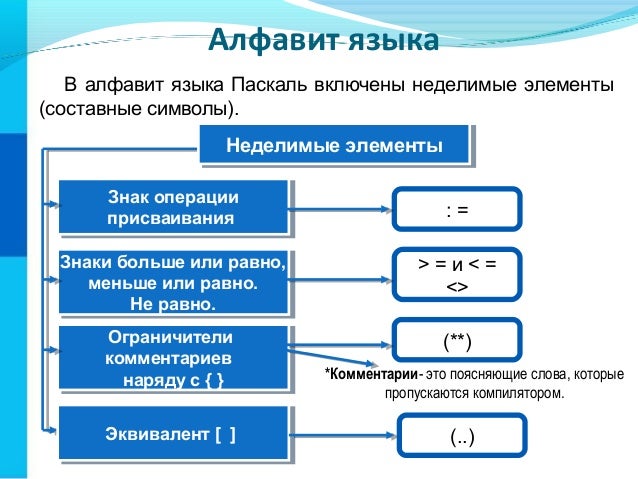 Алфавит программы паскаль