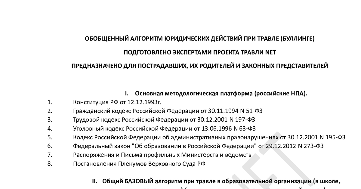 Алгоритм действий при буллинге