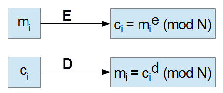 Шифрование выполняется с использованием открытого ключа (n, e) Сообщение должно быть разделено на части, а затем каждая часть должна быть заменена на число (которое должно быть больше 0 и меньше n На практике сообщение делится на фрагменты, каждый из которых состоит из определенного количества битов.