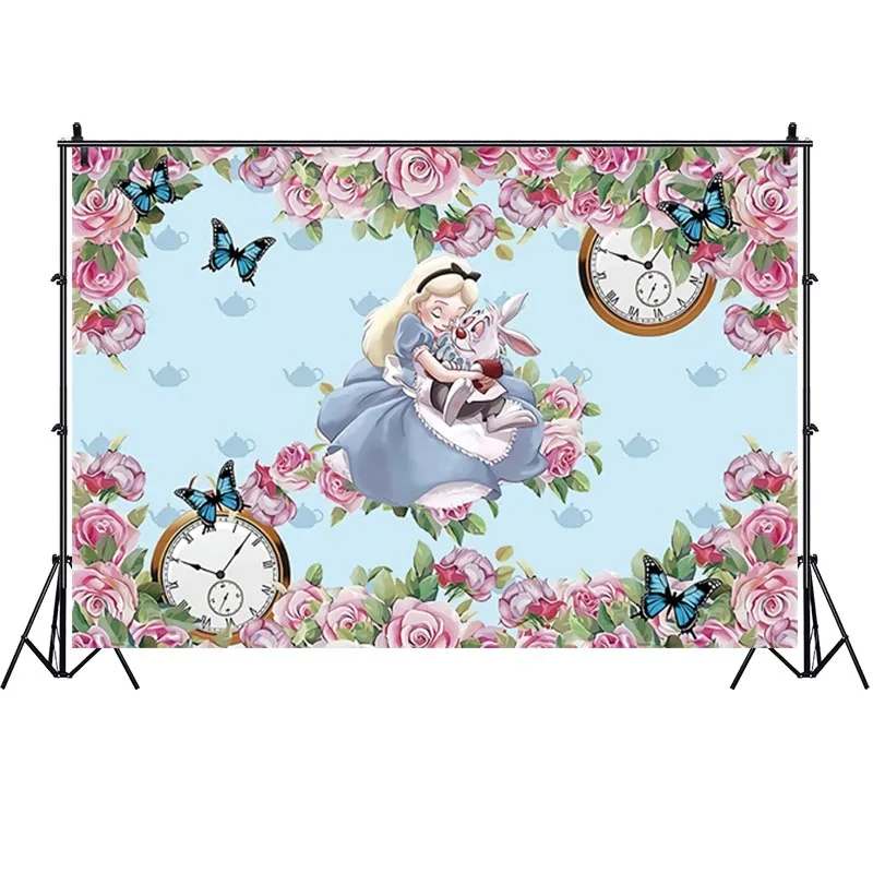 «Alice In Wonderland Backdrop Princess Girls Birthday Party Clock Rabbit Pink Flower Photo Background Photocall Prop Decor Banner» по лучшей цене на рынке! Всего за 5$ (475рублей)