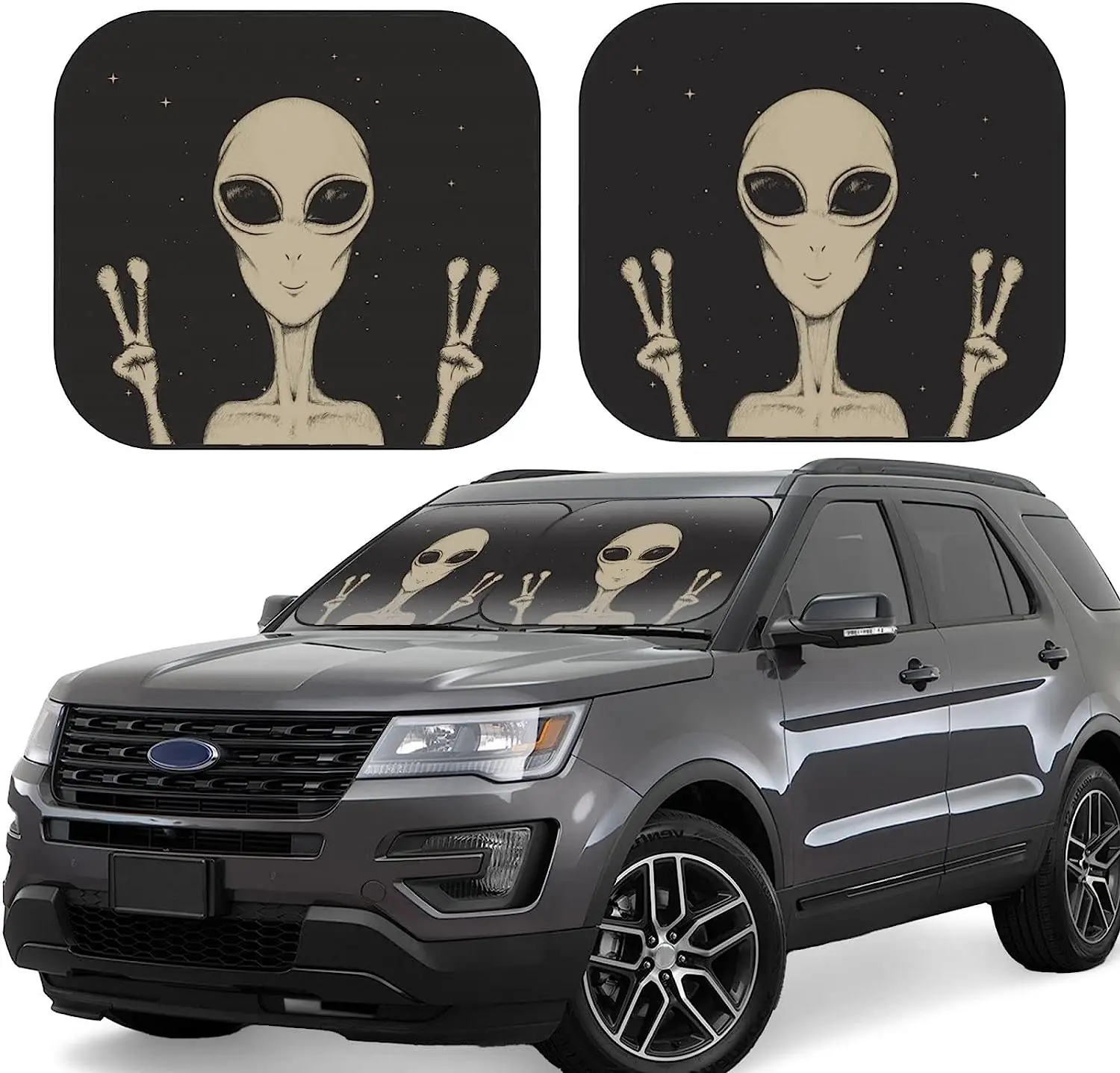 OKiJgOFXopHere you can buy Alien Showing A Peace Sign Car Windshield Sun Shade Auto Foldable 2pcs Window Sunshades for Windshield Sun Visor Protector with free delivery to your post office.