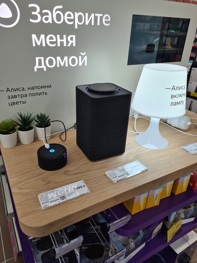 Яндекс .Станция — умная колонка с голосовым помощником Алисой . Она помогает в повседневных делах, играет музыку в высоком качестве, находит и показывает кино, управляет умным домом .