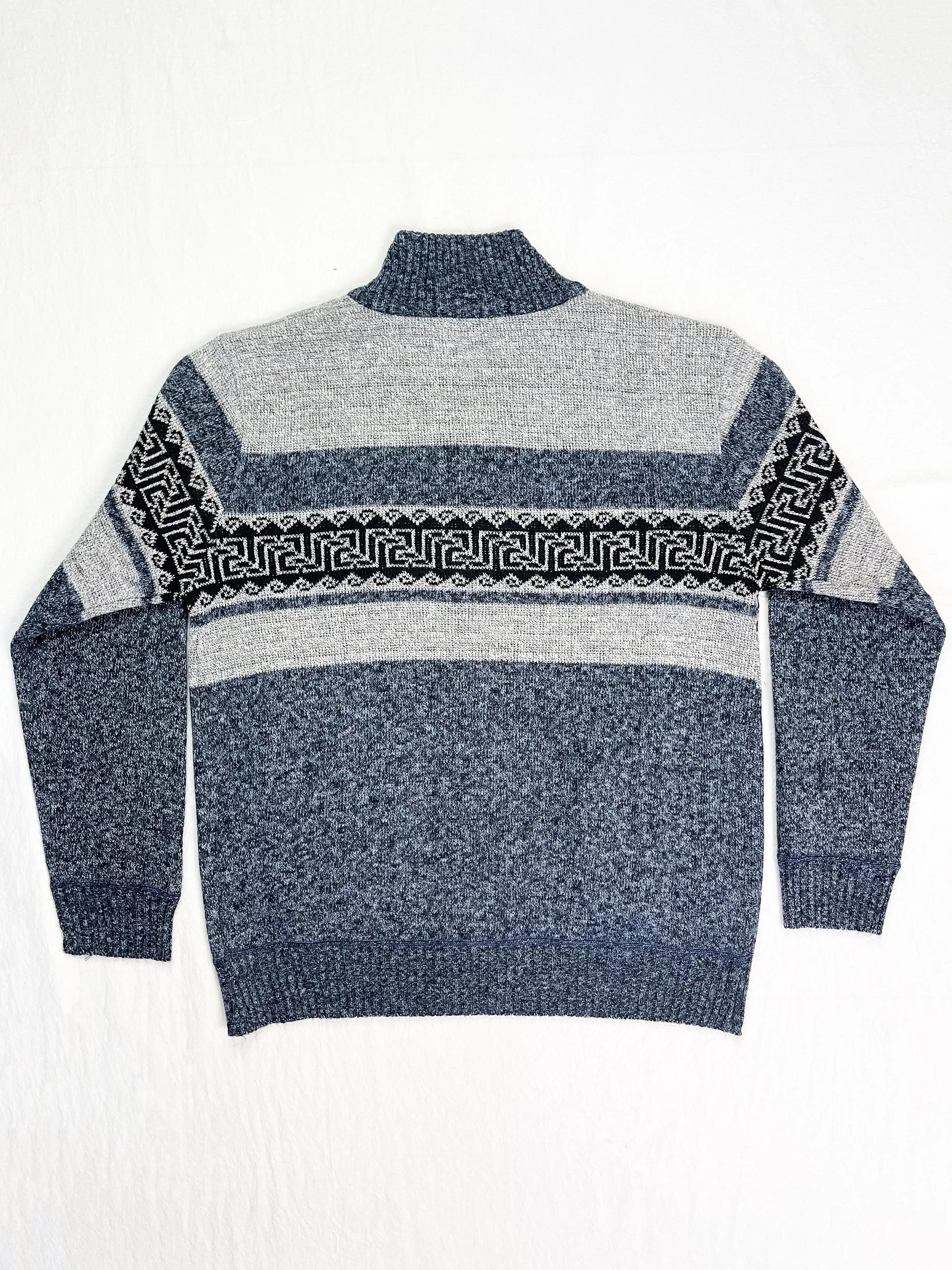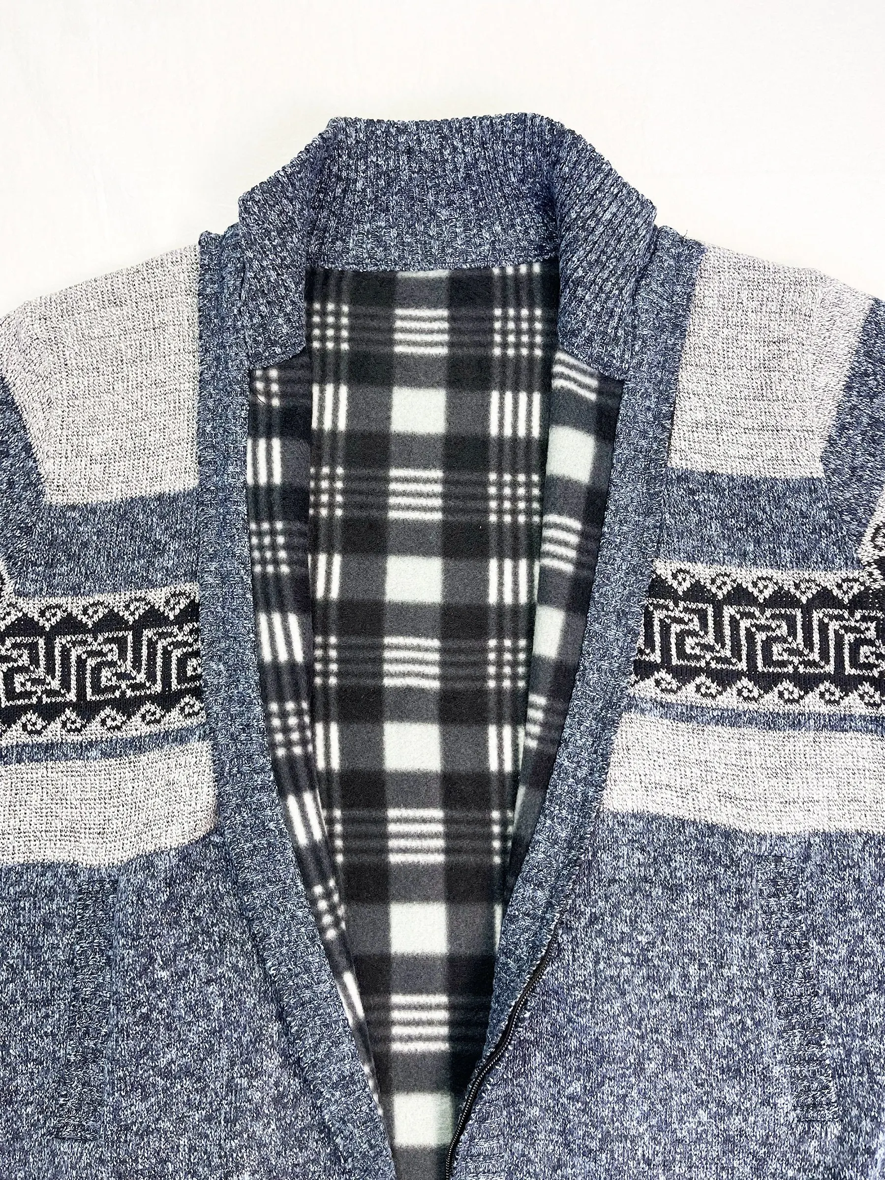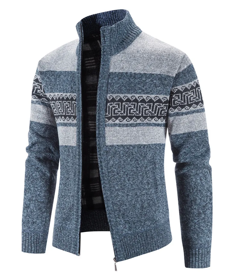 "All Match Knitted Color Block Design Geometric Pattern Stand Collar Cardigan, Men's Casual Warm Slightly Stretch Zip Up Jacket F" * Buy Now With Free Shipping Just For $34