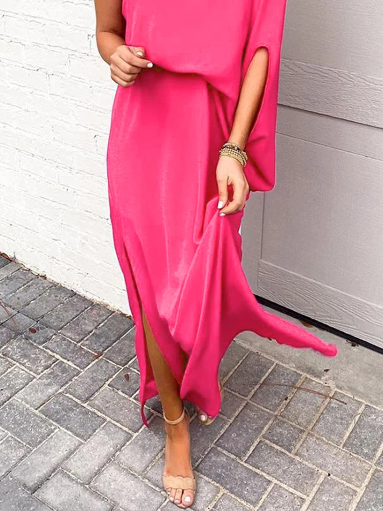 «All Match Summer Ruffled One-shoulder Waist Dress Short-sleeved Loose Side Slit Irregular Fashion Dress Plus Size Dress Mujer» по лучшей цене на рынке! Всего за 16$ (1520рублей)