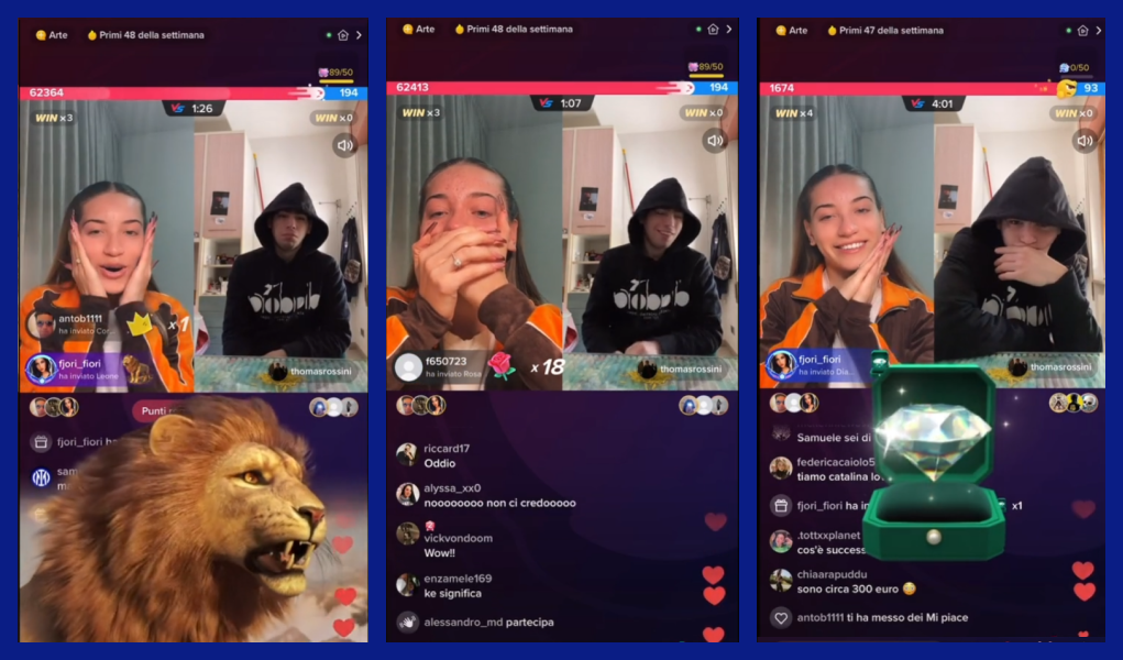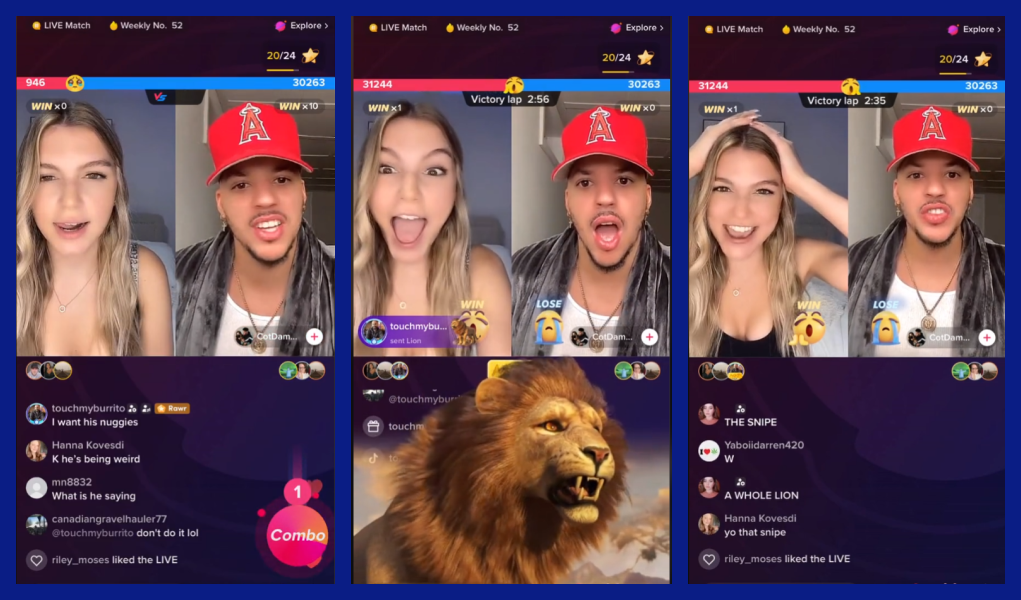 Who wins and who loses depends only on the audience. A creator who receives the most Gifts or the more valuable Gifts within five minutes of a match is declared a winner.