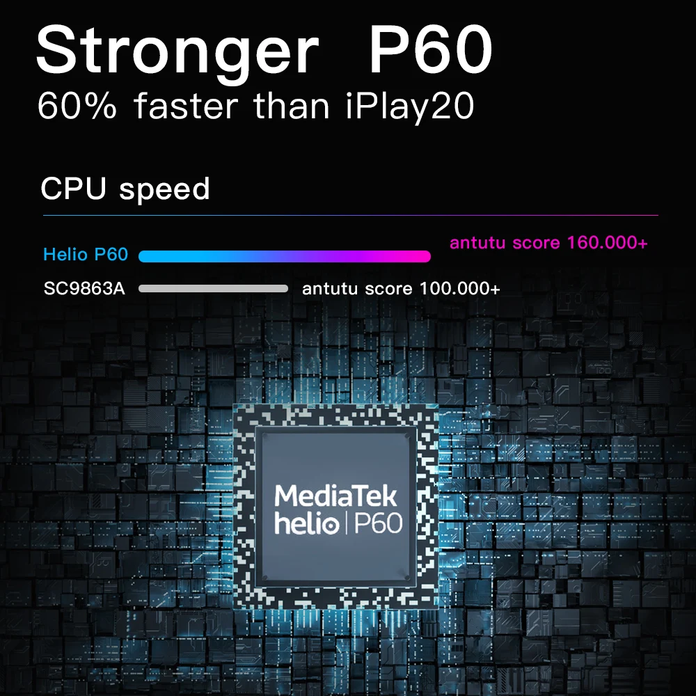 Alldocube iPlay 30 Pro . Dimensioni: 258 .3 x 159 .4 x 8 .2 mm Peso: 510 g SoC: MediaTek Helio P60 (MT6771) Processore: 4x 2 .0 GHz ARM Cortex-A73, 4x 2 .0 GHz ARM Cortex-A53, Numero di core: 8 Processore grafico: ARM Mali-G72 MP3, 800 MHz Memoria RAM: 6 GB, 1800 MHz Memoria interna: 128 GB Display: 10 .5 in, IPS, 1920 x 1200 pixel, 24 bit Batteria: 7000 mA·h, Li-Polymer (litio-ione-polimero)