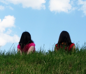 Ragazze carine in bikini sforbiciano