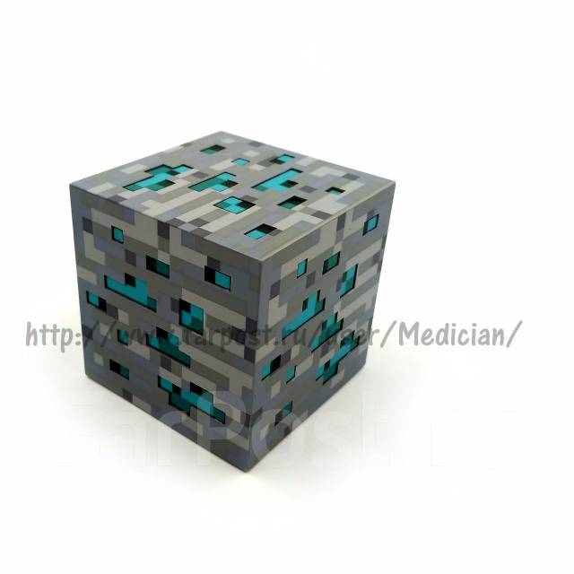 Декоративный коллекционный кубик из дерева в виде алмазной руды из игры Майнкрафт со светодиодной подсветкой внутри . Изображение нанесено методом фотопечати . Это будет отличным элементом в интерьере любого . . .
