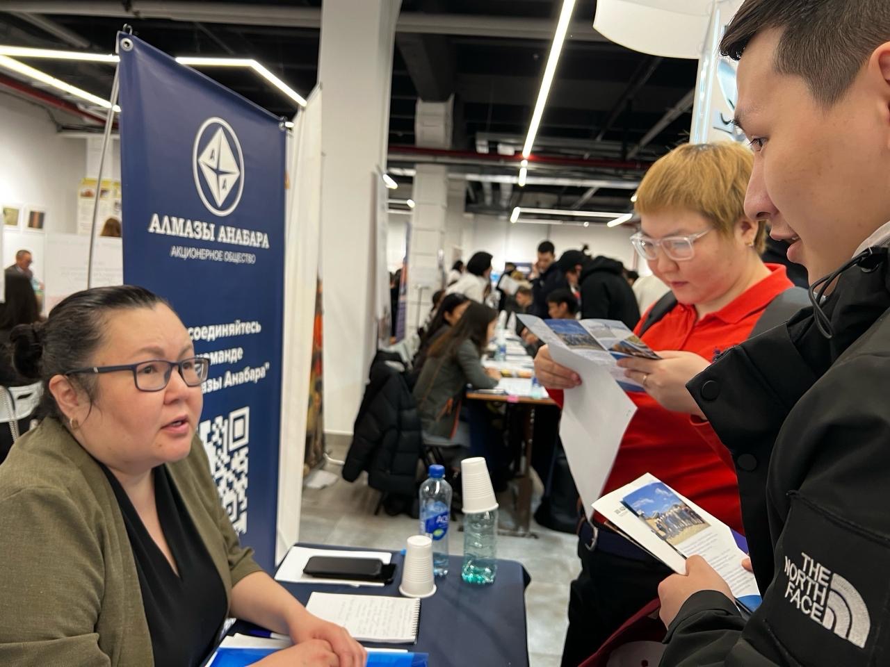 АЛРОСА представила солидный список вакансий, а также принимала заявления соискателей на вахтовый метод работы. Очереди за ценной информацией от специалистов компании появились с самого утра. Актуальные вакансии представили не только головная компания, но также ее дочерние предприятия и подразделения: «Алмазы Анабара», Якутское предприятие по торговле алмазами, «Алмаздортранс», «АЛРОСА-спецбурение» и другие.