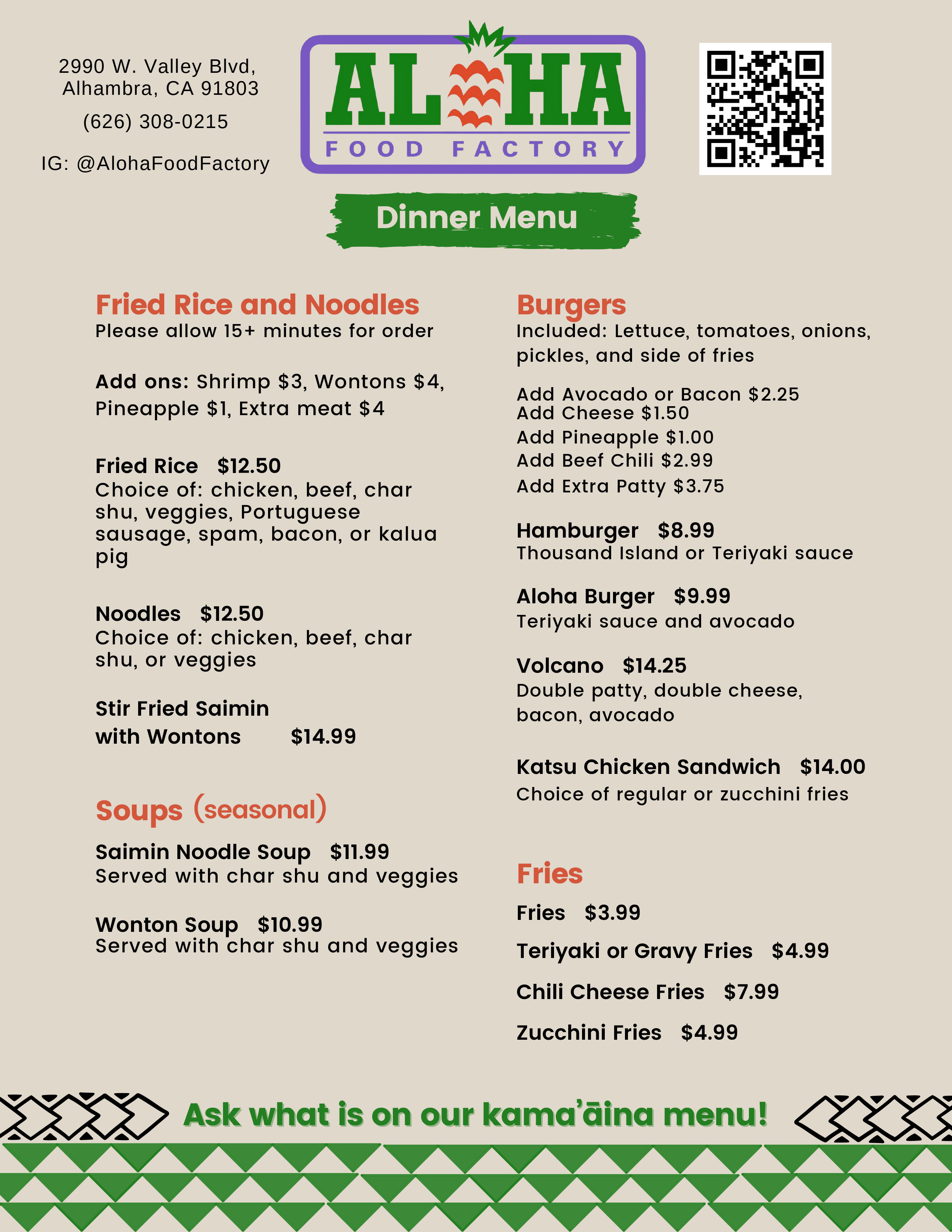 Алоха меню