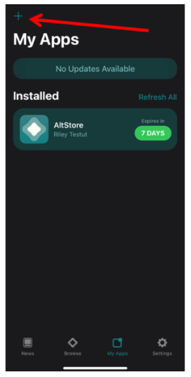 2. Tap “+,” select the IPA file you want to install to install it.