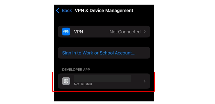 5. Before activating the Altstore App, please head to “Settings”→“General”→“VPN & Device management” on your phone. Find “DEVELOPER APP” and tap Trust to activate the Altstore App.