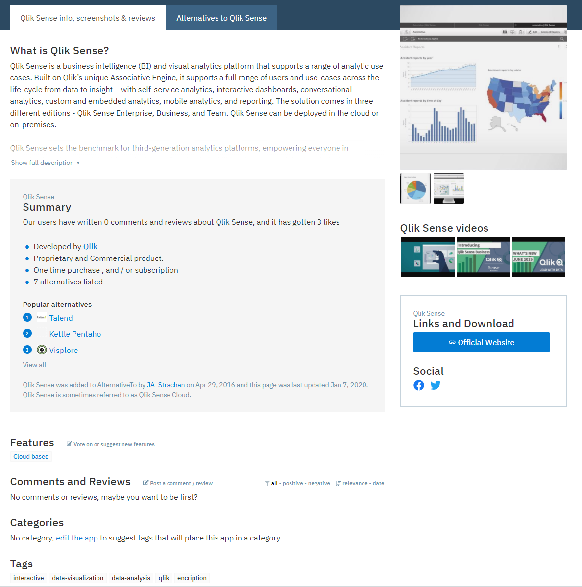 Qlik Sense имеет 7 альтернатив, замечу - PBI, Tableau туда не входит!