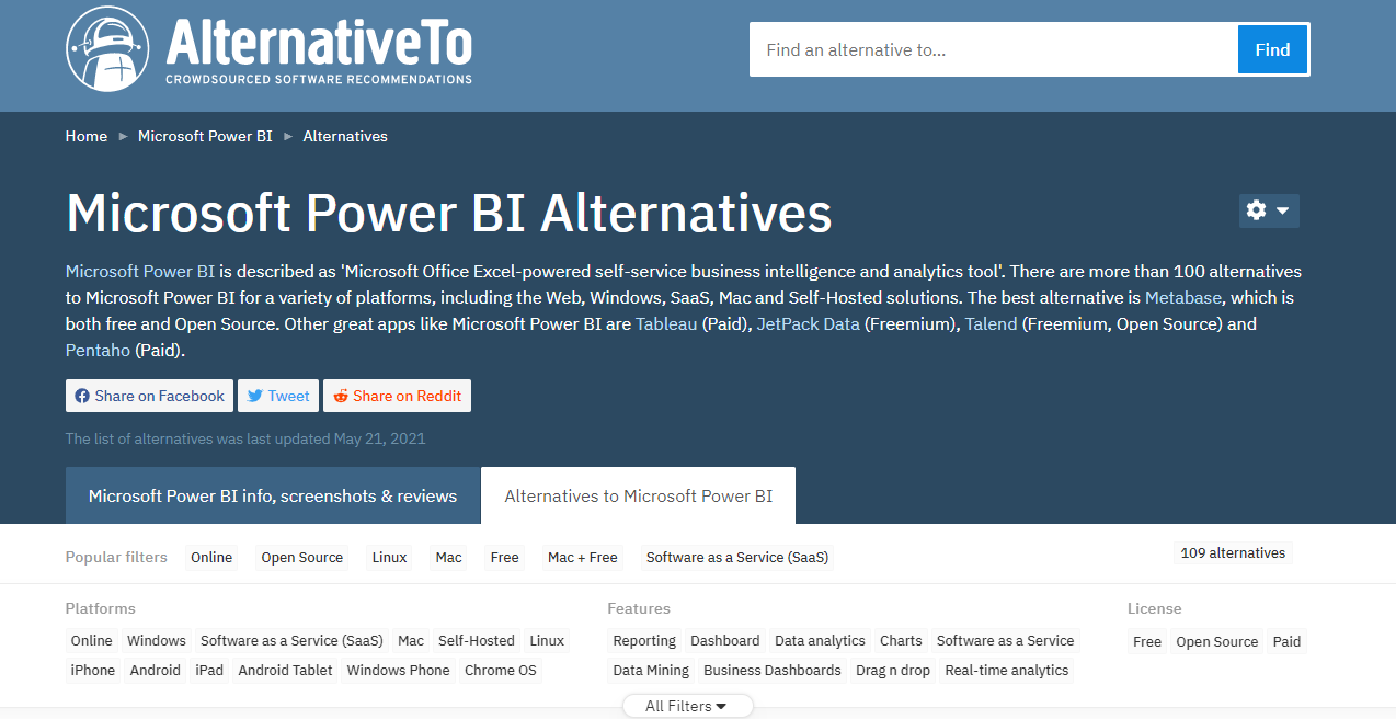 Какие альтернативы у Power BI ? 109! ого...