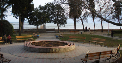 Парк замечателен еще и тем, что он очень уютен и тенист - настоящий "зеленый зал" с видом на море . . . . Фото мыса Сарыч Фото поселка Форос Фото бухты Ласпи Дорога Алушта - Судак Фото . . .