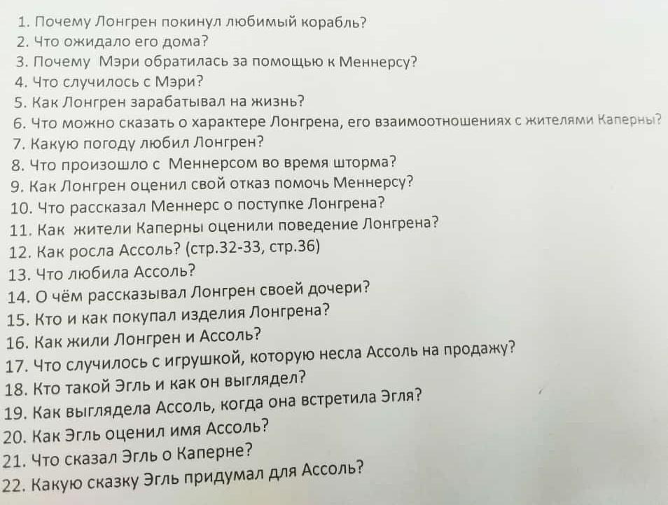 Алые паруса 10 вопросов