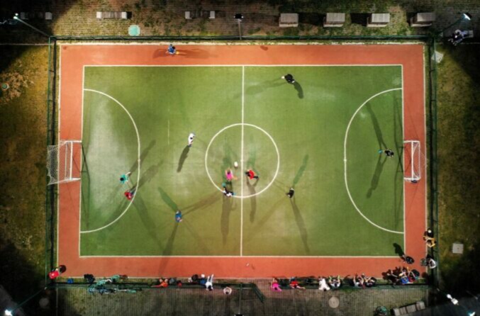 Due coppie in azione all'aria aperta