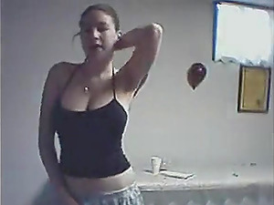 Amazing brunette flashing her goodies on camera