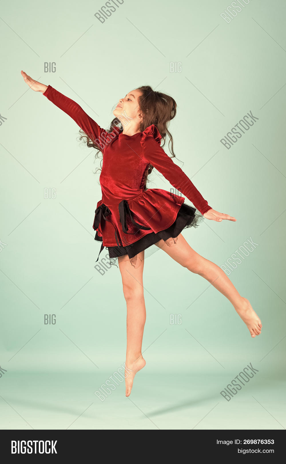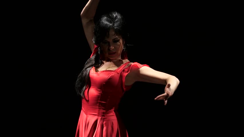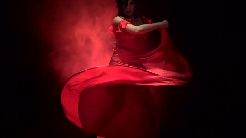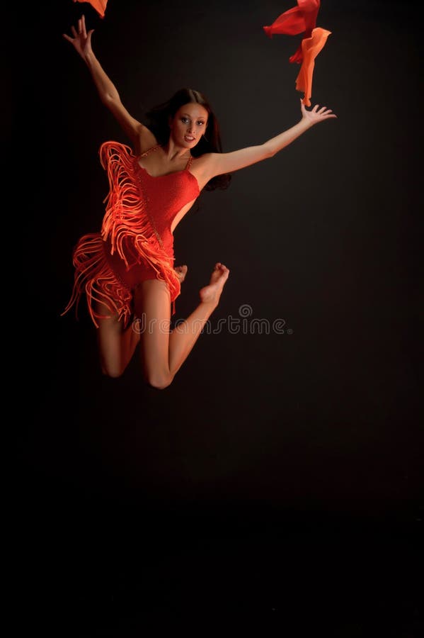 Amazing brunette in red outfit performing a dance