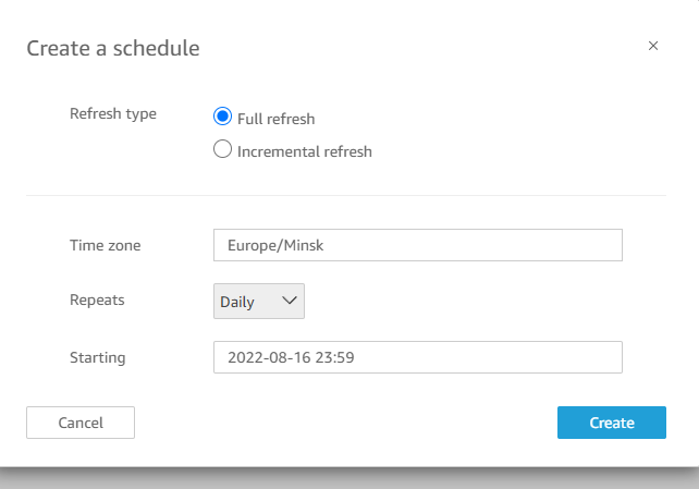 После загрузки датасета, есть вот такие настройки, и тут же настраивается планировщик загрузки