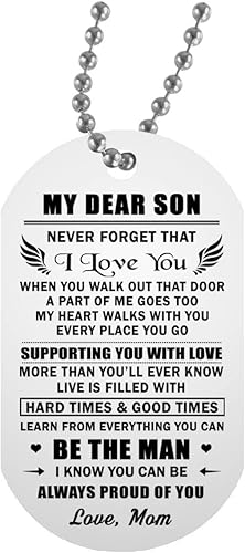 Amazon's Choice for gifts from mom to son . Inspirational Gift to Son from mom-Never Forget How Much i Love You Gift Keychain for Teen Boy from Mother in Law Stepmom . 4 .8 out of 5 stars 1,627 . $9 .99 $ 9 . 99 . Get it as soon as Tomorrow, Apr 8 . FREE Shipping on orders over $25 shipped by Amazon .