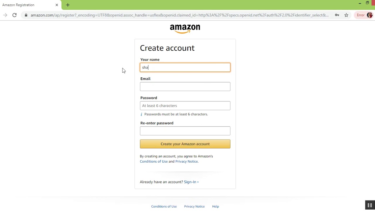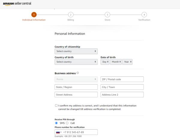 Amazon зарегистрироваться