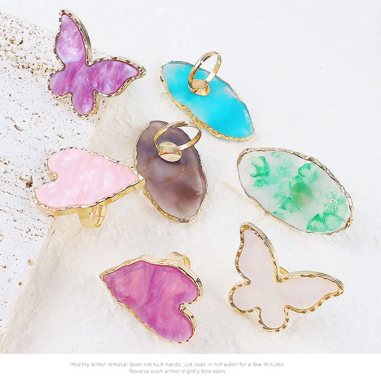 "Amber Resin Stone Nail Art Palette Finger Ring FalseTips Drawing Color Butterfly Mixing Display DIY Manicure Polish Gel Tool" * Buy Now Just For 3$