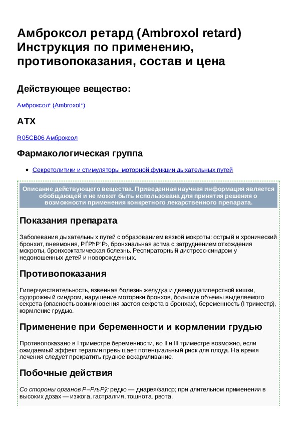 Амброксол Ретард Таблетки