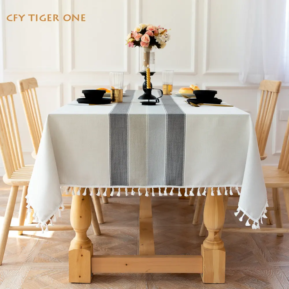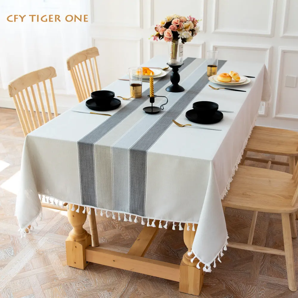 American Cotton Linen Color Stitching Tablecloth for Table Decorate Antifouling Rectangular Tablecloth with Tassel Table Cover - Купить с бесплатной доставкой