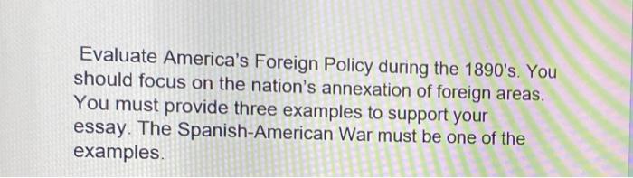 American Foreign Policy in the 1890's Essay 708 Words | 3 Pages . American Foreign Policy in the 1890s American foreign policy during the 1890s was based on many factors that each acted as an individual justification for our country's behavior as a whole . Racism, nationalism, commercialism, and humanitarianism each had its own role in the . . .