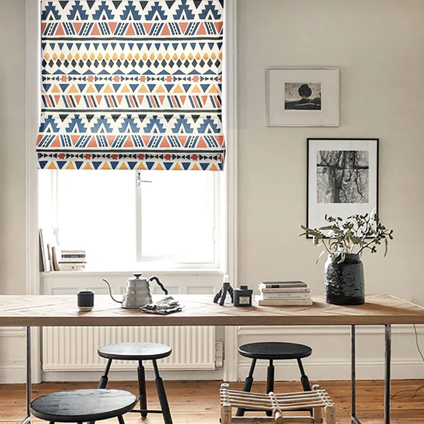 KaOXvxzrHere you can buy American Geometric Abstract Pattern Flat Roman Shades With Hardware Included Custom Window Curtains For Living Room with free delivery to your post office.