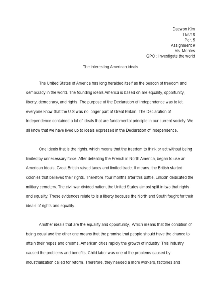 DOC "American" Ideals Essay - Weebly