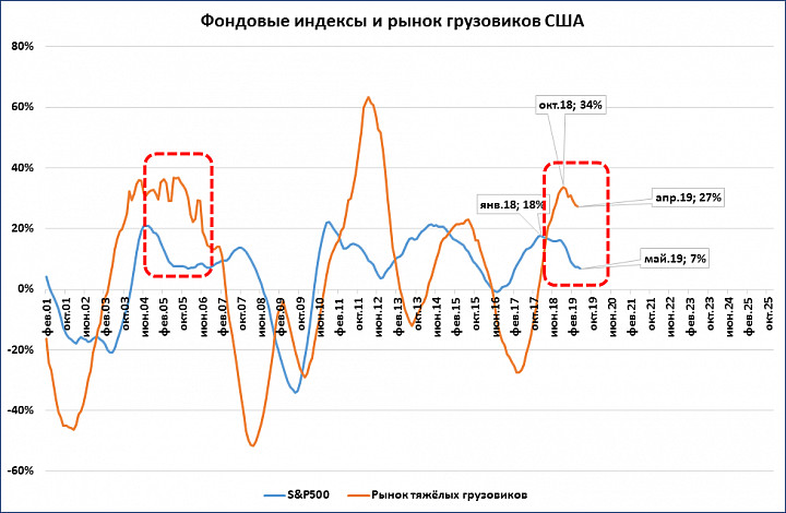 Можно сравнить динамику индекса с динамикой реального показателя – рынка тяжёлых грузовиков в США: