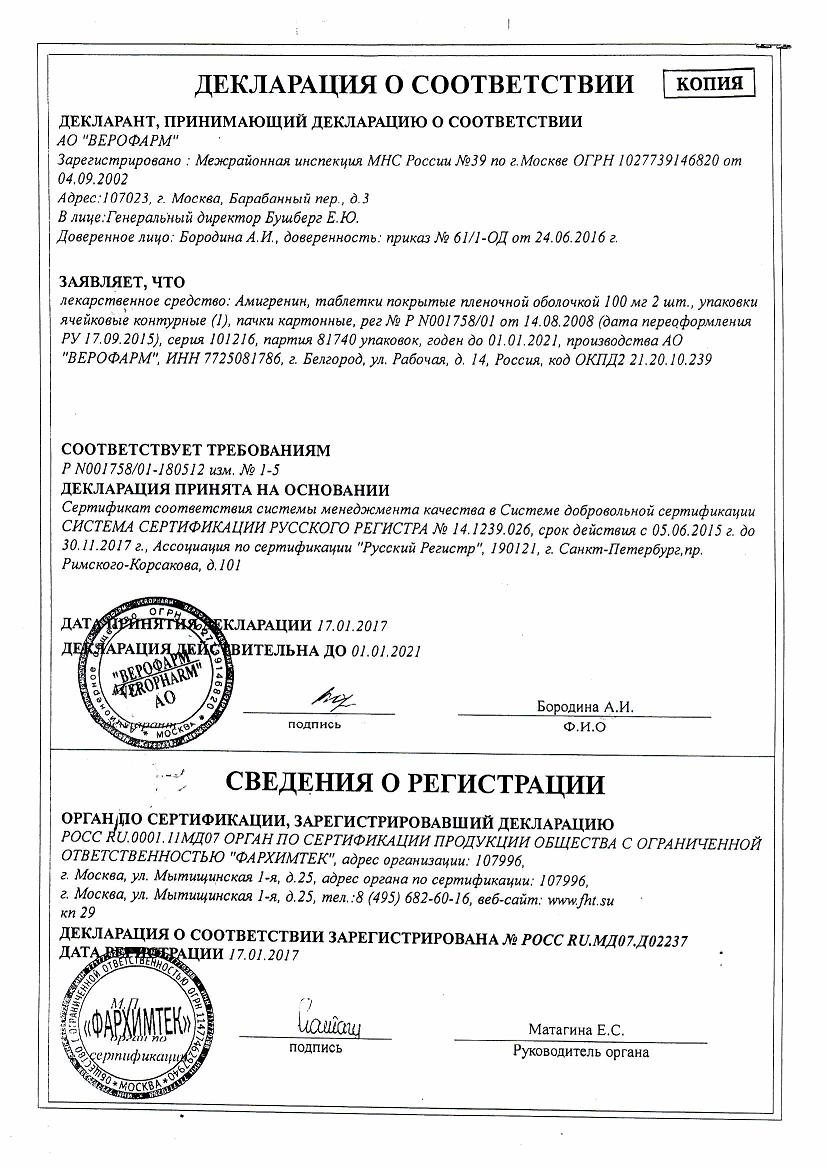 АМИГРЕНИН: инструкция, отзывы, аналоги, цена в аптеках . . .