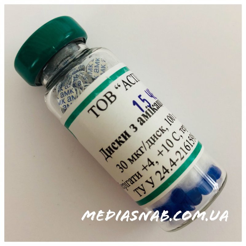 Для этого используют диски с 30 мкг амикацина . Необходимо следить за тем, чтобы плазменное содержание амикацина не превышало 25 мкг/мл .