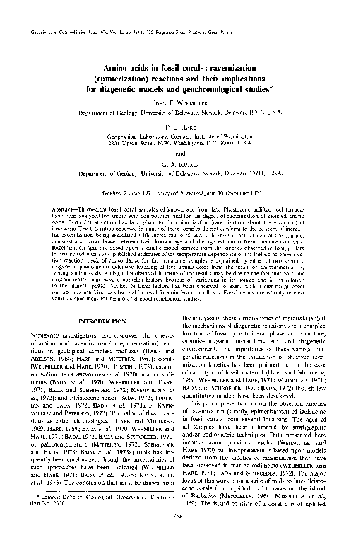 Amino acid racemization dating of fossil bones , I . inter-laboratory comparison of racemization measurements Earth and Planetary Science Letters By: J .L . Bada , E . Hoopes , D . Darling , G . Dungworth , H .J . Kessels , K . A . Kvenvolden , and D .J . Blunt