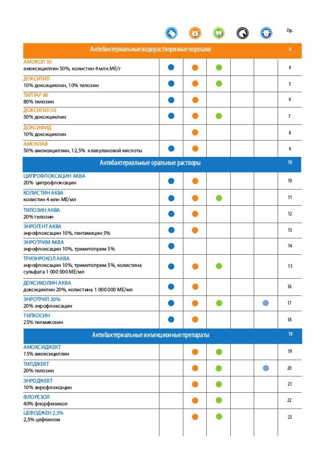 Список ветеринарных препаратов с Амоксициллин - активное . . .